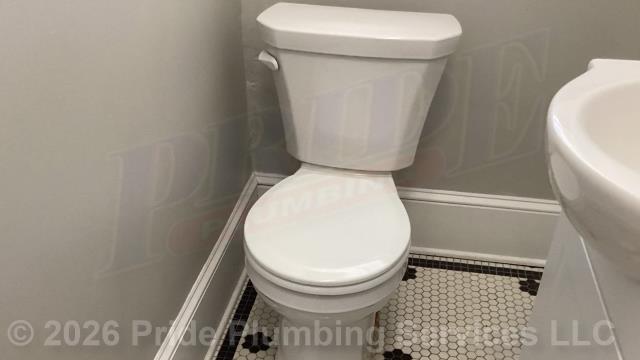 Pride Plumbing came out and replaced a leaking toilet with a new Gerber Viper model. This included draining and pulling the old toilet, inspecting and cleaning the flange, replacing the toilet bowl, toilet tank, tank to bowl gasket and bolts, seat, wax ring gasket, toilet bowl bolts, toilet bowl bolt washers, toilet bowl bolt caps, and above-floor stainless steel braided water supply line. We also replaced the toilet tank's water supply stop and added four plastic shims underneath the toilet bowl to level it. Once installed, we tested for leaks and proper operation with no issues and caulked around the toilet bowl's base.