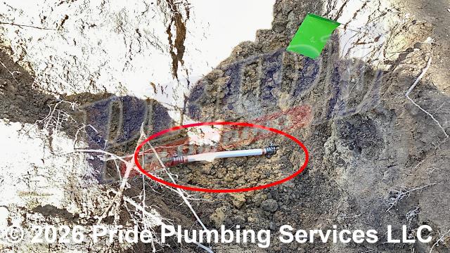 Pride Plumbing was called out for a water leak in the yard. After shutting off the water, we dug down and found a leak on a section of the black roll outside main water supply line. We cut out the faulty section of pipe and repaired it with new PEX piping and fittings. We then turned the water back on, flushed debris out of the water line at an outside hose bib spigot, and checked for leaks with no further issues. We also provided a cost estimate to trench a ditch from an existing water meter to the home and replace the black roll main outside water supply line with new black roll and PEX piping and fittings along with installing a new pressure reducing valve (PRV) and ball water shutoff valve at the water meter.