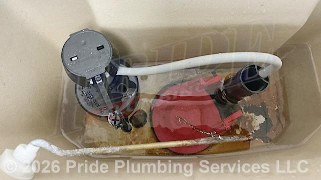 Pride Plumbing was called out for low water pressure in the building. Our inspection and tests found that a main water valve was not fully opened. After opening the valve all the way, proper water pressure was restored. There was also an issue with a toilet tank running constantly and not filling. We replaced the tank's flapper with a new Lavelle 3060BP red Korky universal flapper and corrected the issue. We provided a cost estimate to replace the toilet with a new Gerber Viper model. This would include draining and pulling the old toilet, inspecting/cleaning/replacing the flange, replacing the toilet bowl, toilet tank, flapper, water fill valve, tank to bowl gasket and bolts, seat, wax ring gasket, toilet bowl bolts, toilet bowl bolt washers, toilet bowl bolt caps, and above-floor stainless steel braided water supply line.