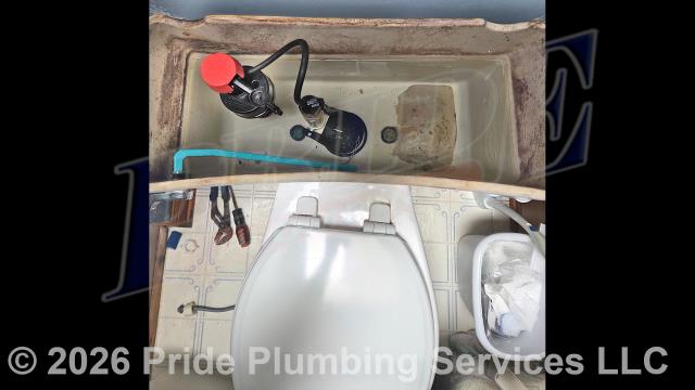 Pride Plumbing was called out for a Gerber toilet tank that would run constantly and not fill. We replaced the toilet tank's water fill valve with a new Fluidmaster PRO45B model; its flapper with a new Lavelle 54BP black Korky model; and its above-floor braided stainless steel water supply line with a new Mainline MLB19DLMF model and tested for leaks and proper operation with no issues. We also provided a cost estimate to replace the toilet with a new Gerber Viper model. This would include draining and pulling the old toilet, inspecting/cleaning/replacing the flange, replacing the toilet bowl, toilet tank, flapper, water fill valve, tank to bowl gasket and bolts, seat, wax ring gasket, toilet bowl bolts, toilet bowl bolt washers, toilet bowl bolt caps, and above-floor stainless steel braided water supply line.